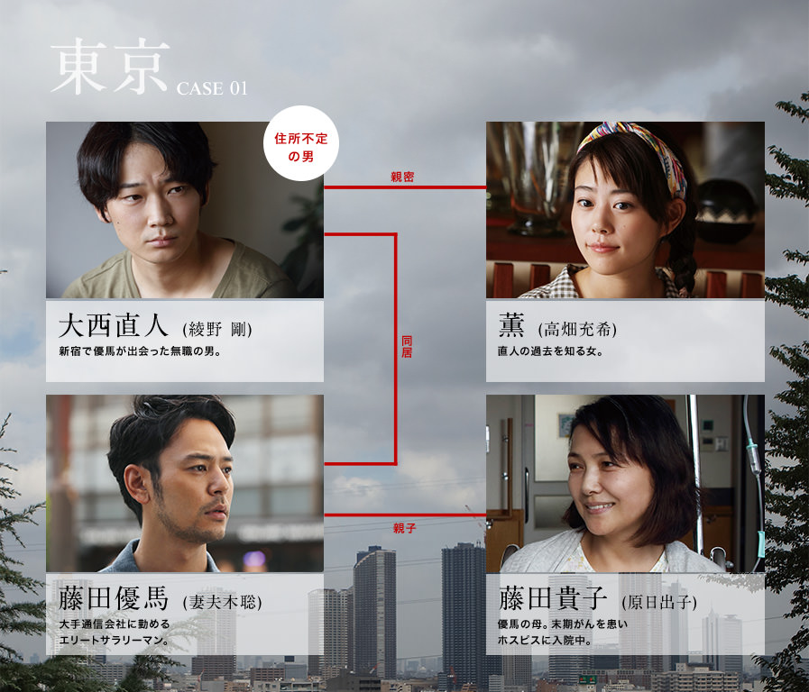 我自己是同性恋,在电影预告中看到妻夫木聪很性感,所以完完全全是为了看他而去看了这部电影,感觉收到了很大的冲击。这是一部非常、非常沉重,但又很厉害的电影。我觉得在电影里的3个故事中,讲述的重心放在宫崎葵(+渡边谦)和广濑丝丝的两个部分上。关于这两个部分,已经有人进行了点评,那么我仅就优马(妻夫木聪饰)和直人(绫野刚饰)这对情侣来写一下感想。