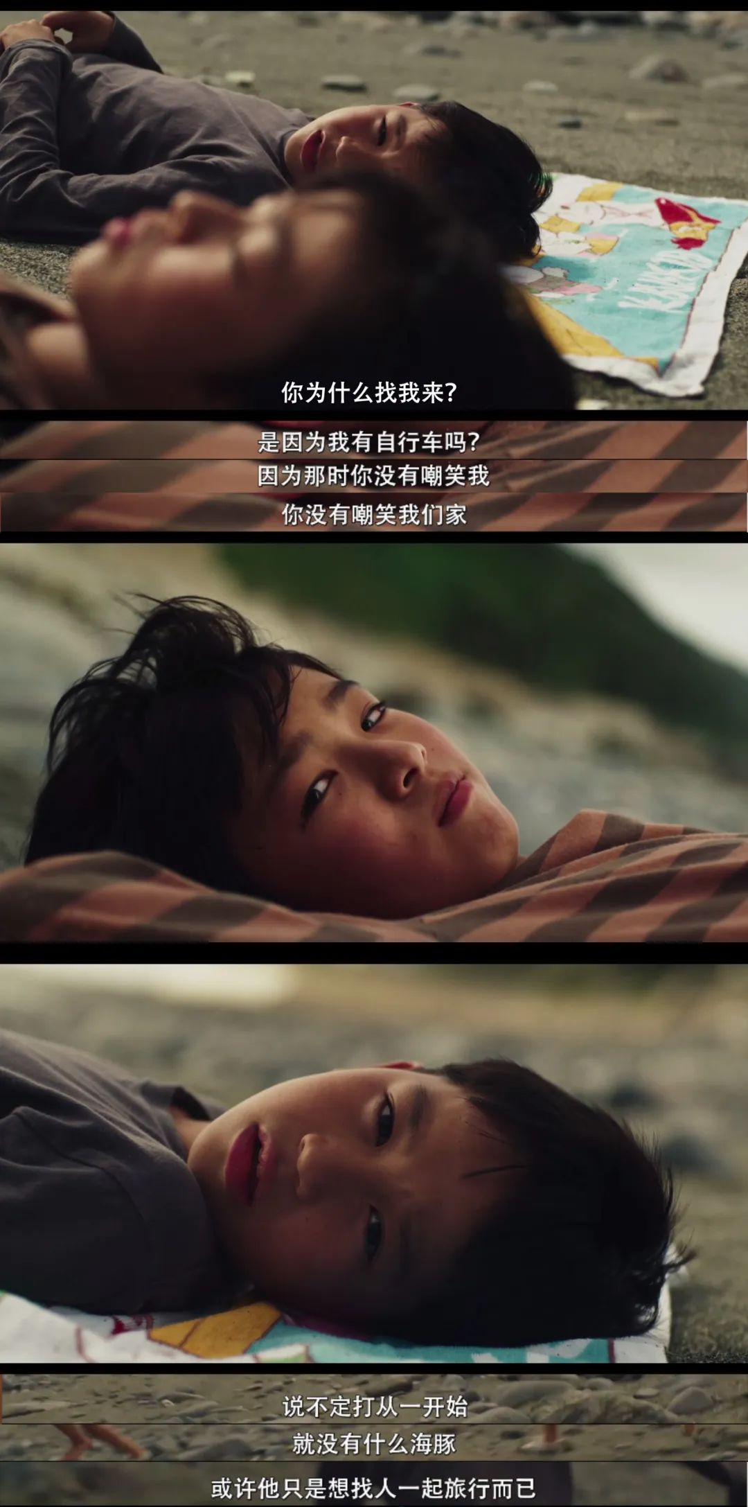 我一直认为我的童年算不上美好,甚至有些悲惨,跟着小竹和久田好像又回到了童年,我也曾和小伙伴偷偷骑着自行车去隔壁村,隔壁的隔壁,隔壁的隔壁的隔壁村,去看“唱戏”,守着一块钱一根的淀粉肠吞上几口口水;几个人一起去偷杏子,偷红薯,不过照鲁迅的说法,在地头摘几个吃,也许不算偷,吃下一颗酸到牙颤的杏,小伙伴突然说一句“我听我爸爸说他们家好像刚打过农药”我会担惊受怕一晚上,心里都拟好了“遗书”,直到看到清晨的第一缕阳光,舒一口气,庆幸自己还活着;我们曾在大年初一穿着新衣服拿着鞭炮打起了“炮战”,我因为勇敢的捡起敌方扔过来尚未爆炸的鞭炮反扔回去而被本队队员称赞,中午休战回家前看着新衣服上的十几个窟窿却感到一阵头疼;我曾像久田一样胆小,也曾有过小竹类似的经历,而我的那些曾经的玩伴他们或已早早工作又或者已经成家了吧……直到字幕出现,我想明白了这些年一直坚持学影视的原因,大概就是想把以上的文字用影像的方式纪录怀念吧。