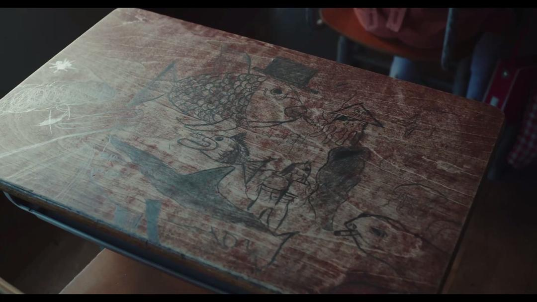 竹本离开了,只剩了一张画满鱼的课桌,
