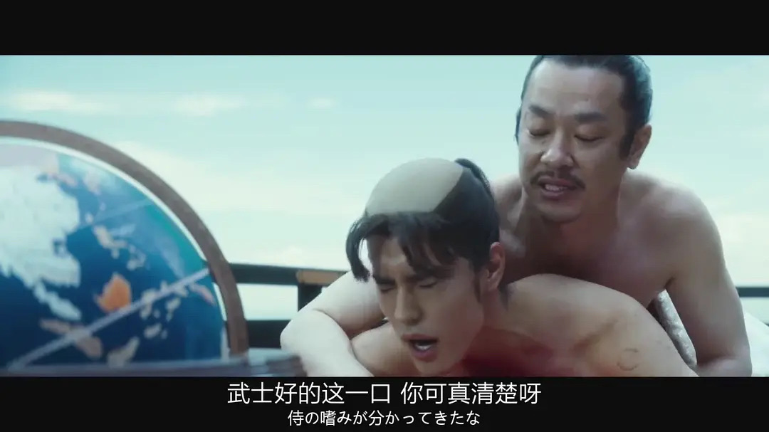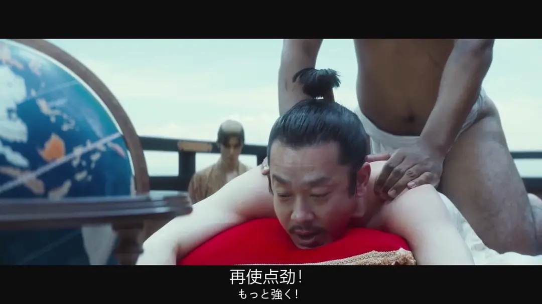此外,有一个细节,堪称本片最高级的笑点,把介错关系比喻成xxoo关系,影片中间织田信长在男宠的上位,随后意犹未尽的信长叫黑人坐在自己身上进行颇有xing意味的按摩,即男宠<信长<黑人,