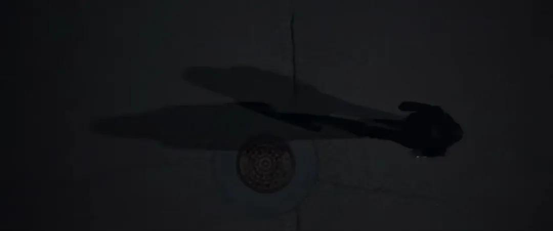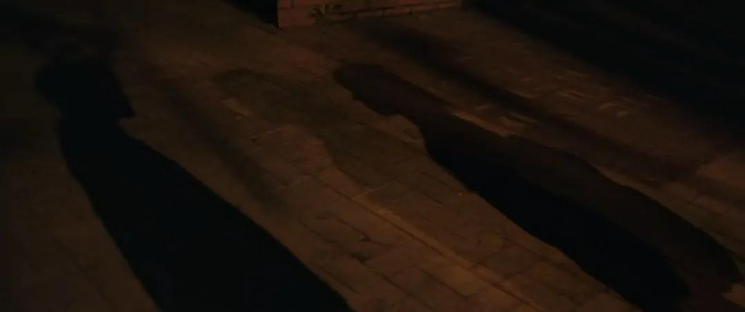 影子还可以表达人物孤立无援、找不到出路的心理。调查陷入僵局的时候,鸟瞰镜头下的封闭式构图,被困住的、拉长的影子看起来格外无助,张泰洙办案不顺、孤立无援的处境在这个镜头中表露无遗。