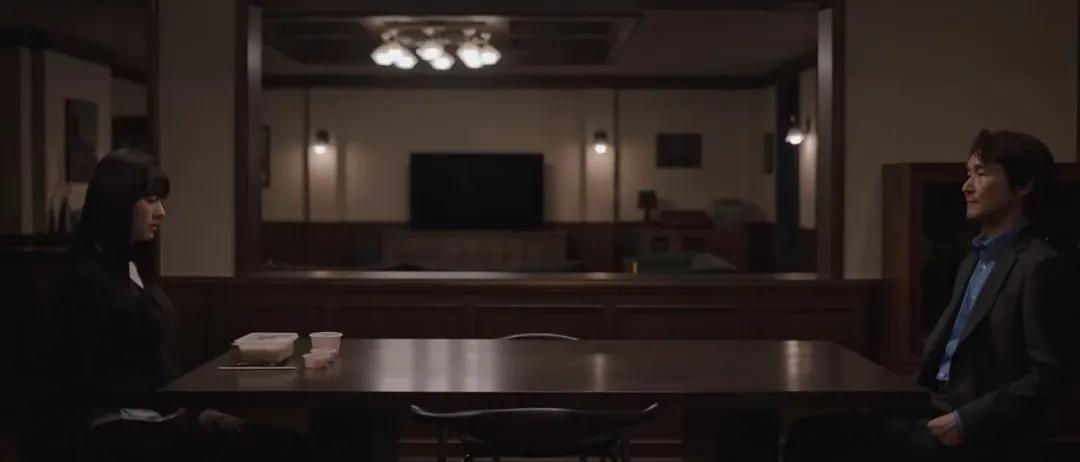 随着桌子长度、肢体语言、镜头角度变化,以及具有象征意义的景框的消失,人物关系终于在最后迎来了大转变,父女的心理距离在审讯室才变得亲近了,虽然是平静、克制的语调,但对于这对不会表露情感、非同寻常的父女来说,已经是最高级别的感人场面了~