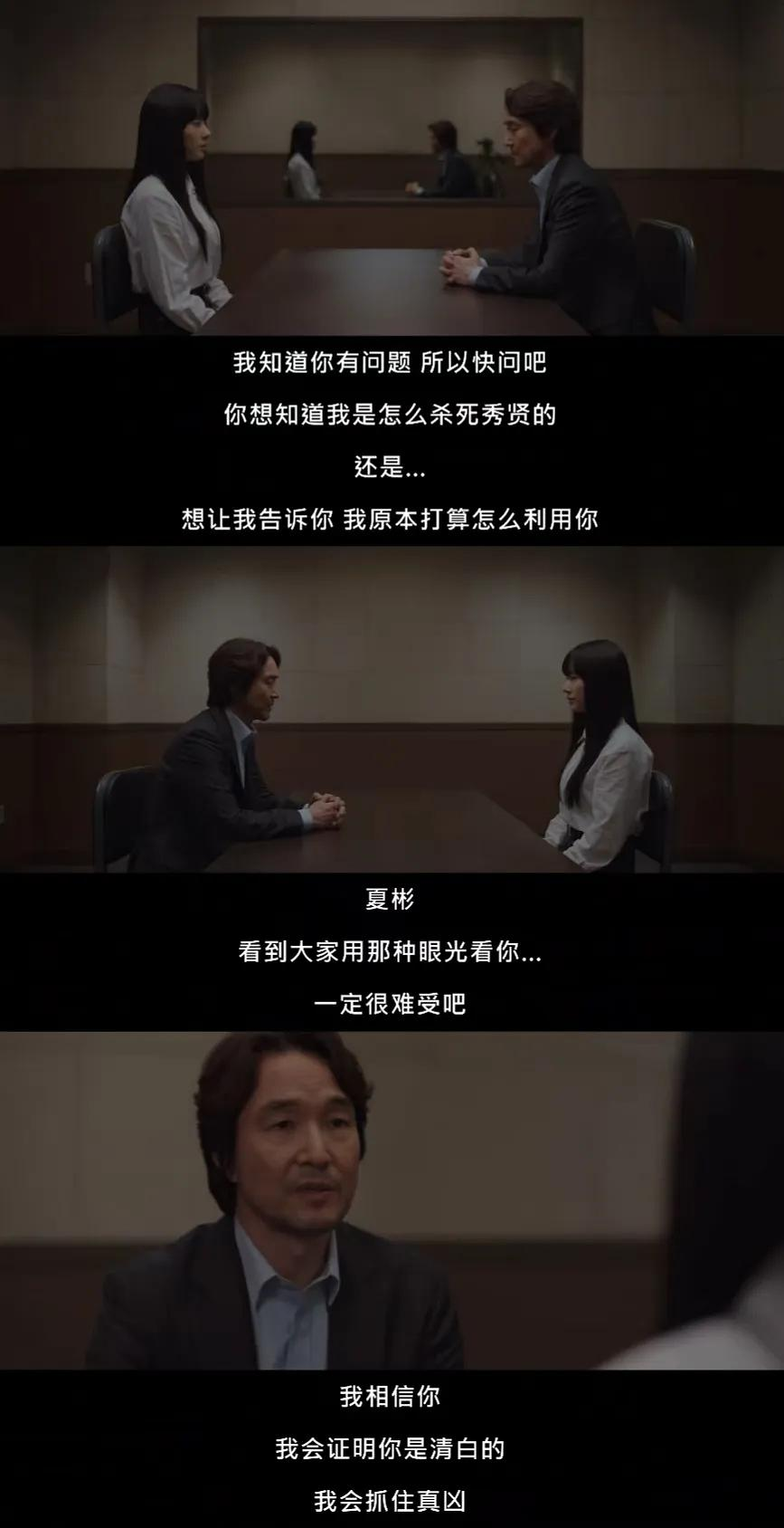 2024-11-23看到第6集,夏彬母亲自杀当天发生很多内幕,夏彬母亲以为夏彬杀死了好友李秀贤,替她埋尸后欲带夏彬一起死,她欲杀死夏彬并付诸了行动,似乎泄露了煤气,只是被夏彬父亲撞破解救了。其实杀死李秀贤的很可能是班主任朴俊泰,这一集的新角色是朴俊泰的父亲,这位神秘的父亲知道儿子的秘密、身手矫健、精神偏执,装作第二个死者宋敏雅的父亲,跟踪欺骗夏彬,想让夏彬当替罪羊吗?