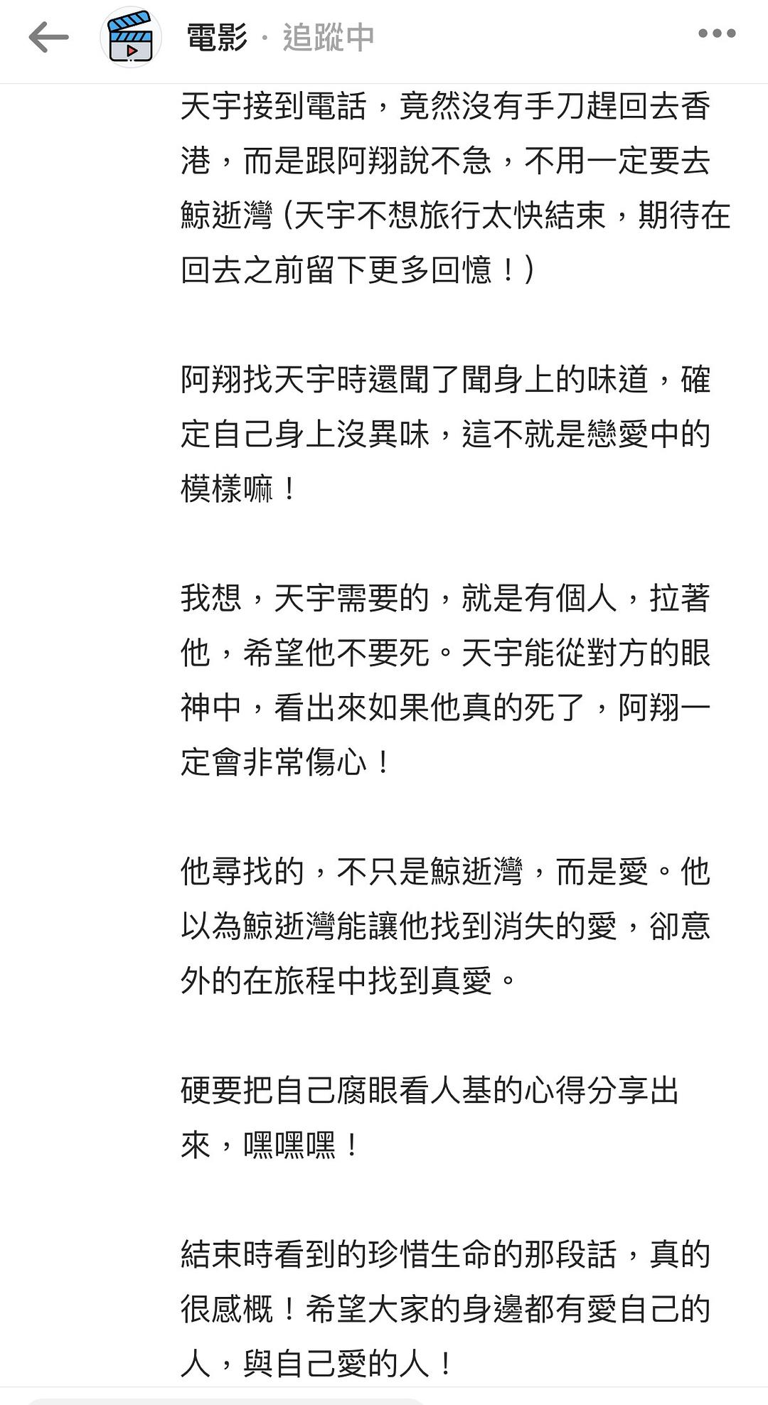 無論是想解讀成兄弟情還是BL,都無所謂,有被這電影感動到的朋友們,相信大家會帶著這樣的感動去珍惜身邊重要的人,畢竟真實的人生沒有重來的機會,很開心我們都享受到這部電影帶給我們的美好!