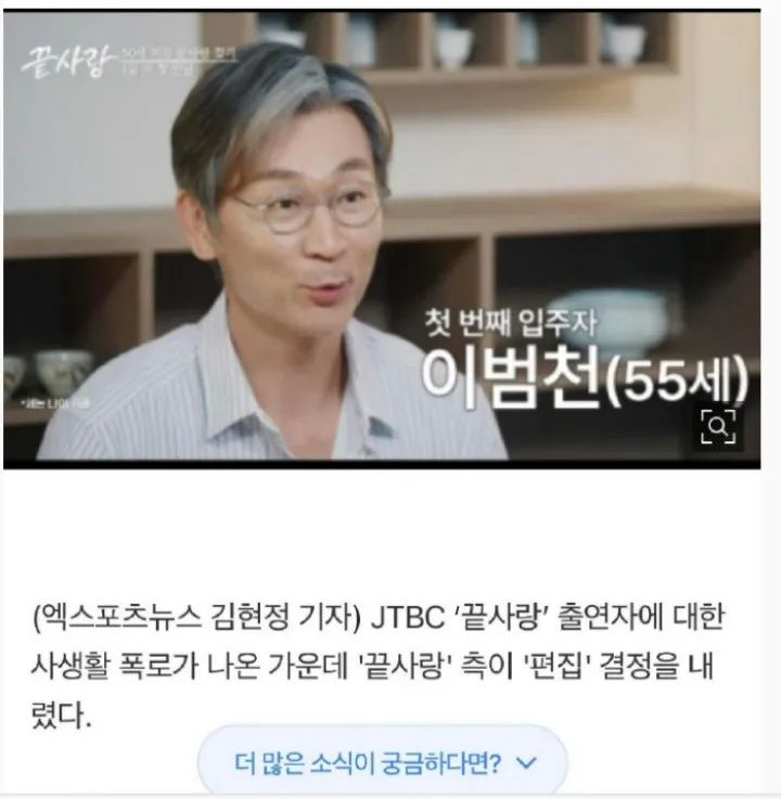 韩国最近爆出男一李凡天在美国骗婚骗房,还是三婚,并仍处于没离婚的状态,JTBC也紧急与男一确认并对节目进行编辑。这说明,《最后的爱情》在嘉宾背调方面也存在不足。这或许也是因为和其他国家中老年恋综偏功能性,真的想帮银发群体解决实际问题相比,韩综仍旧是在“造星”,所以才引来了某些怀着别样心思的嘉宾。