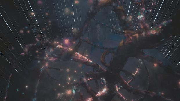尽管被诟病“剧情偏弱”,该剧却以克制的镜头美学完成另类叙事。特写镜头下颤抖的茶杯、蓝线溶解肉体时的声效留白、森林晨雾中若隐若现的麋鹿骸骨……这些元素共同构建起一套沉默的符号系统。温子仁团队放弃廉价的血浆刺激,转而用光影的呼吸感与物件的象征性,让恐怖从视网膜渗透至神经末梢。当奥罗用生硬发音重复“困住”时,语言本身的无力感反而强化了存在的困境。