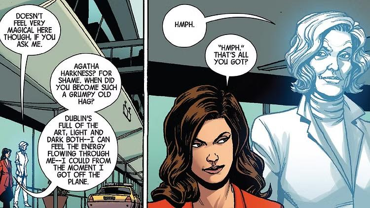93. 幽灵阿加莎提议她和比利的巫术师组队,这听起来像是在有意向 2016 年詹姆斯·罗宾逊和瓦妮莎·德雷的猩红女巫致敬。这不仅是真正的女巫之路(漫画中真实存在的地方)的首次出现,而且旺达还与阿加莎的幽灵一起走在路上,后者是旺达的盟友和精神向导。