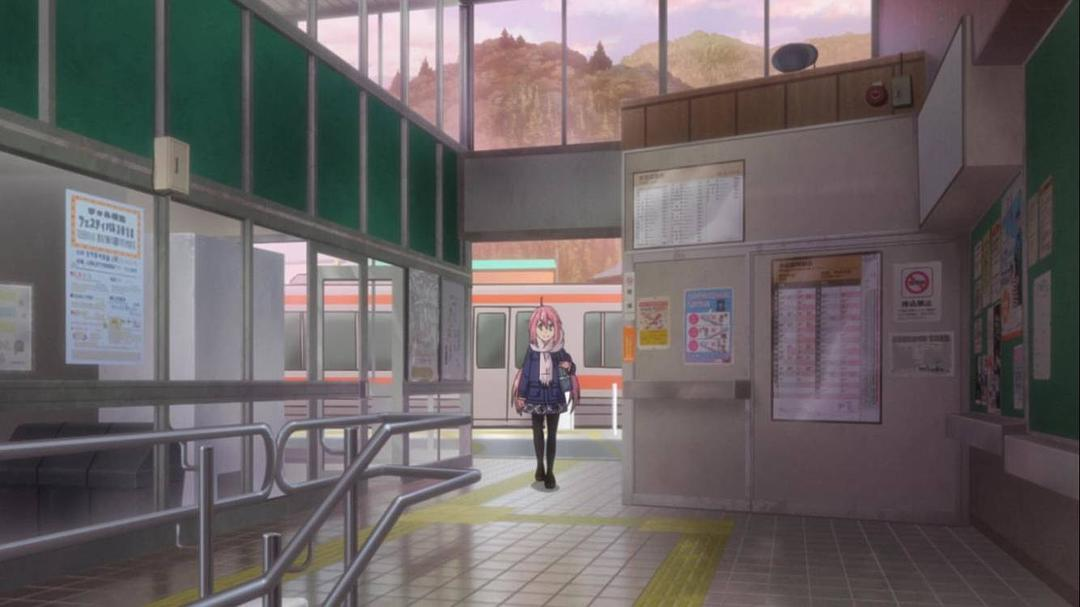 第二季第七集出现两个车站n静冈县富士宫市西富士宫站n抚子单人露营,坐身延线从南部町到西富士宫站。身延线车型见第三季第二集为313系电车。