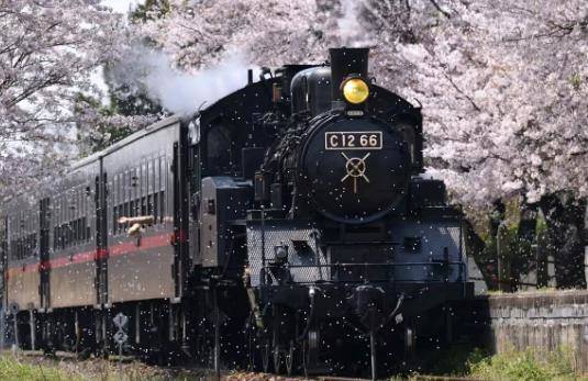 藤井公园这幅图,右边为C12型蒸汽车。nC12型蒸汽机车是日本国有铁道的前身铁道省在1932年制造的过热式水柜式蒸汽机车。