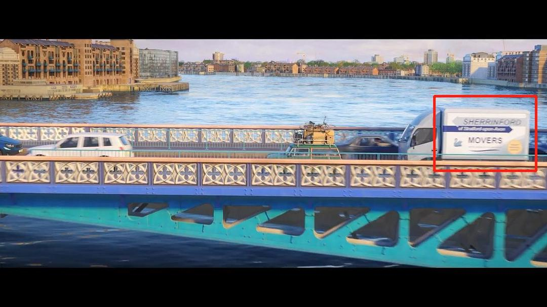 1. 公交车上的标志暗示了故事发生地为英国的埃文河畔斯特拉特福(Stratford-upon-Avon),这也正是威廉·莎士比亚(William Shakespeare)的出生地。