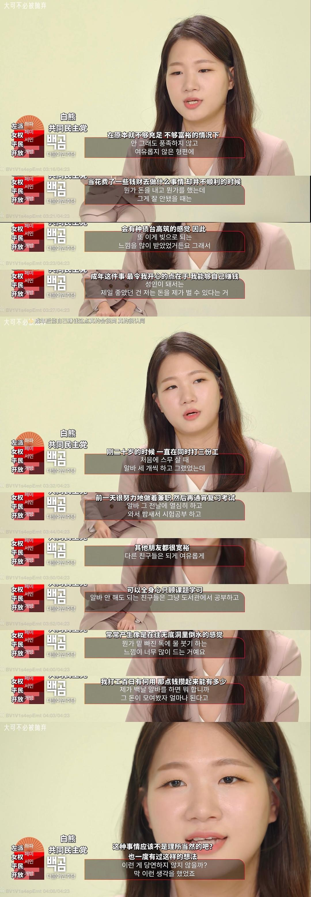 另外,在议题双方的陈述的对比中,会看见哪怕出生在同一阶级背景中,不同的性别、不同的人生经历,会如何影响一个人价值观的形成。
