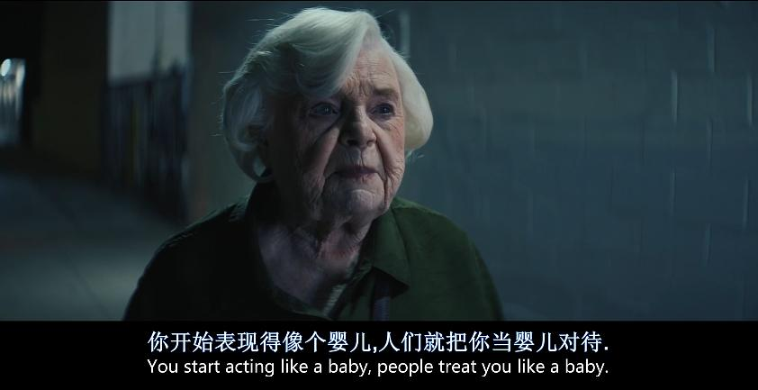 言下之意,如果连自己都感觉自己不行了,那便是真不行了。n全片老奶这一人物,可谓都是被这口不服老的气顶着。不过接下来老头的一句话,让老奶顿时哑然。“她摔倒的时候我听不见”。