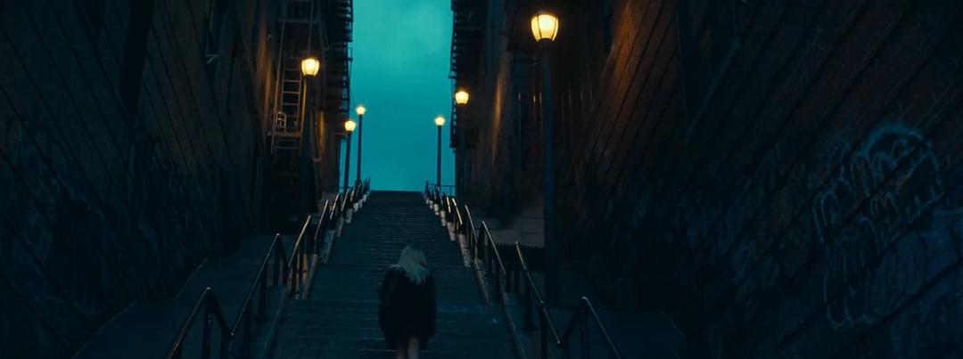 自然,整部电影的最高潮,又回到歌舞段落。台阶上,亚瑟找到莉,要和她一起远走高飞。不想莉又唱了起来。