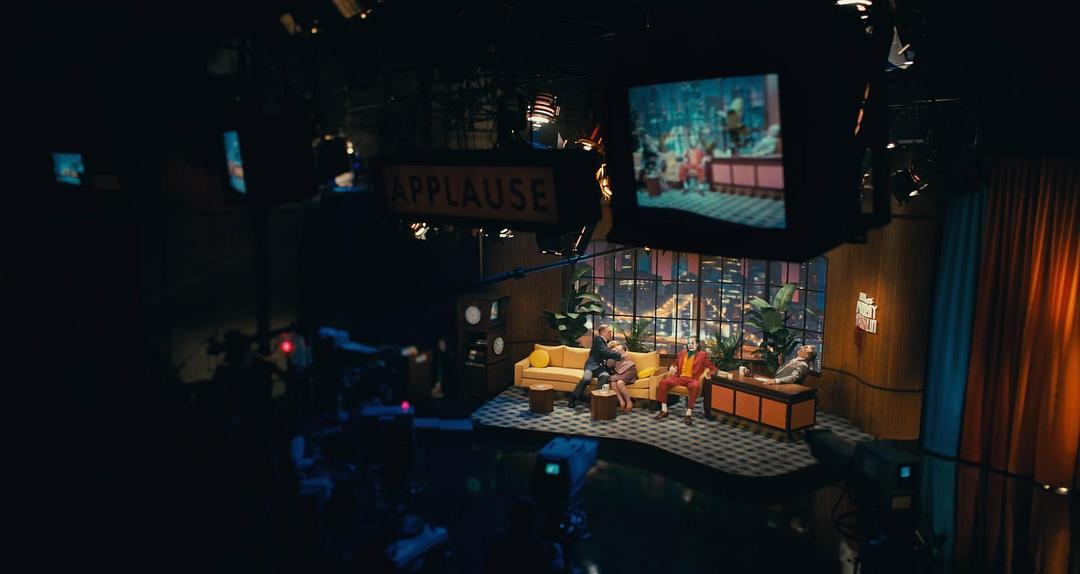 从最浅层讲,《小丑2》讲的就是偶像塌房的故事。而且这个偶像,还不是娱乐产业造星的结果,而更像是当代语境下的网红,是个体的偶然行为,经由媒介放大,意外点燃了群体情绪。亚瑟正是如此。他原本只是个失败的喜剧演员,因为直播杀人而走红。而那场直播秀,则生动地为我们展示了一个字头是如何诞生的。它往往要依赖于,极具辨识度的符号——Joker形象;目标明确的敌人——托马斯·韦恩和默里·富兰克林所代表的傲慢的精英阶层;以及饱含煽动力的宣言——“当你惹怒了被社会当作垃圾一样对待的失意者时,你必定会遭到报应!”