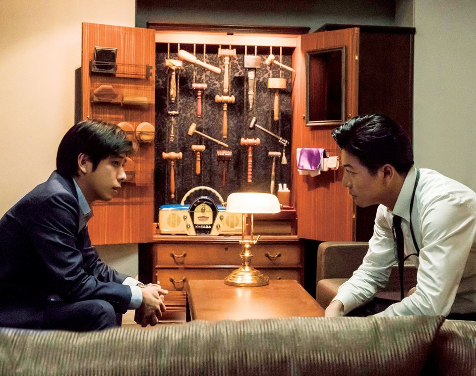 细节方面的用心:最上和丹野在河岸边交谈时,对岸在排练跳舞的舞者,和后来松仓车祸现场的舞者是同一群,暗示着松仓的死亡有最上的插手; 丹野跳楼后,最上办公室里收藏法官槌的柜子柜门一直都开着,应该是暗示最上作好了自行裁决松仓和弓岡的决定。