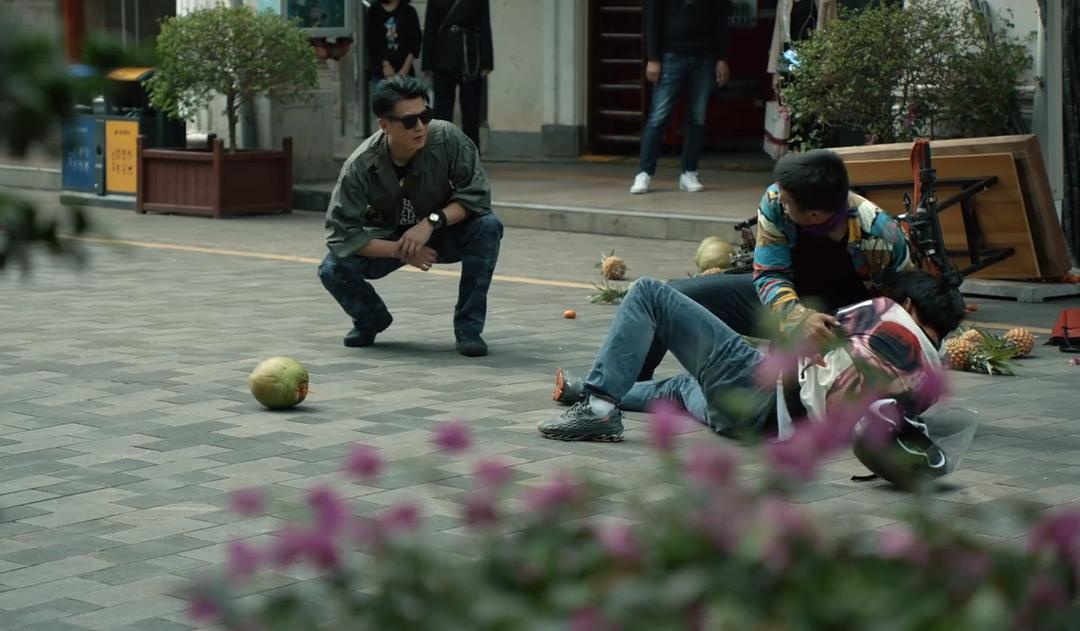 保剑锋饰演的彭鹰翔更离谱,他靠两条腿追,咱也不知道怎么判断抄的近路,反正是一边喝椰汁一边就守株待到了兔。
