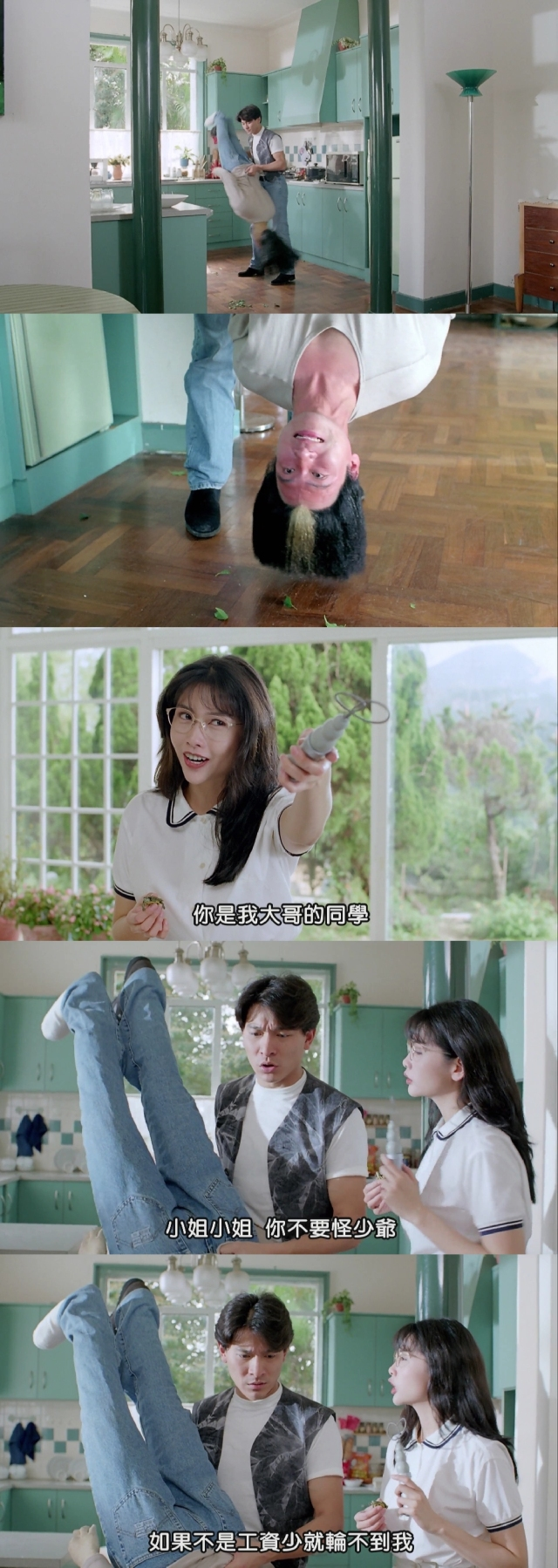 可是回到家,他又被邱淑贞饰演的野蛮妹妹嘲笑欺负,妹妹不但武力值超高,揍起哥哥来也丝毫不手软。