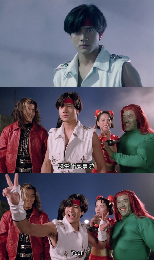 而张卫健的造型则是模仿了经典日本动漫《龙珠》的超级赛亚人孙悟空。(上期文章结尾提示的“孙悟空”是指他主演的TVB版《西游记》)