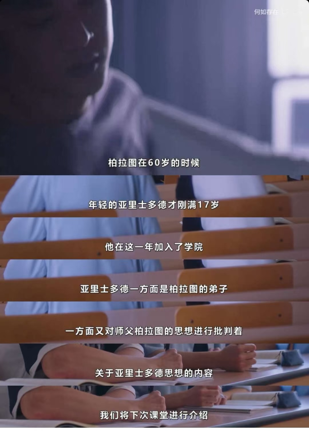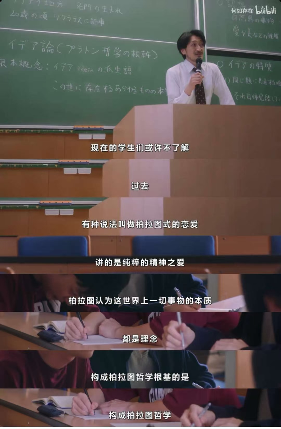 哲学的起点,他们的第一节课。黑板上是三位古希腊哲学家的理论传承,哲学本质上是人理解人,人认识人的理性活动,正如他们的相识相知。