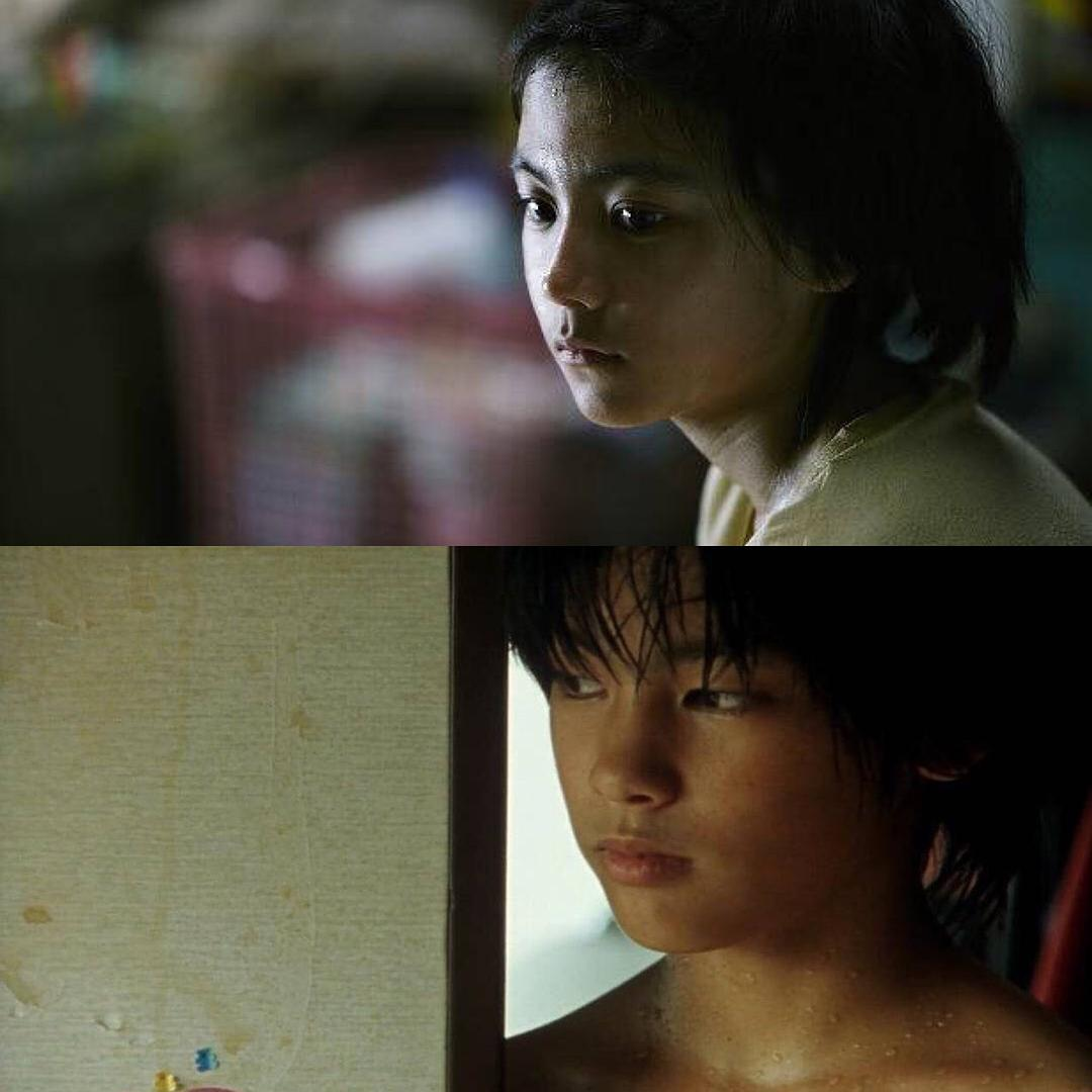 而和14年前的《无人知晓》相比,同样是不能生活在阳光下的黑户孩子,祥太的造型竟然还潮了很多,发带+oversize卫衣,搞得当年的影帝real苦孩子了。