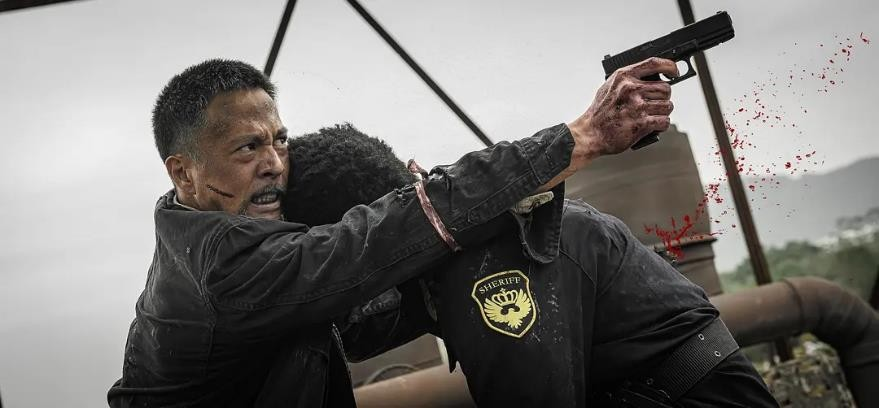 但在这部网大,他的表演堪比一台程序化的格斗机器,台词僵硬得像AI,情感表达近乎于零。他饰演特种兵雷军,居然为了“平静生活”带着家人搬到一个虚构的混乱之地“菲莱”,设定堪比让老虎去动物园当管理员,荒诞得可笑。