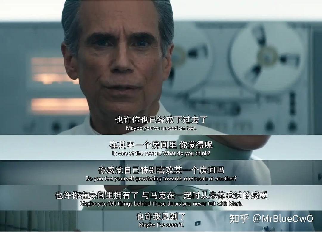最后马克内外混淆时听到凯西/杰玛的声音,不仅是他听到了凯西对马克的描述,更可能那些描述也是曾经杰玛对他说过的话。outie马克终于见到亡妻,泪眼婆娑,演技够硬。