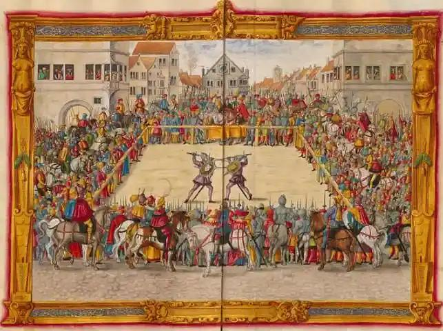 这是1540年代欧洲的一幅绘画,描绘的是1409年奥格斯堡的一场司法决斗,与哥白尼的时代接近。