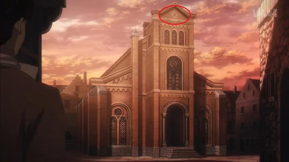 动画的这个镜头为典型的中世纪哥特式建筑。其哲学为将光线无限地引入建筑空间,以体现神性。交叉穹隆,飞扶壁,石头窗框,薄墙,彩绘玻璃的使用。彰显了那个时代,教会的地位。
