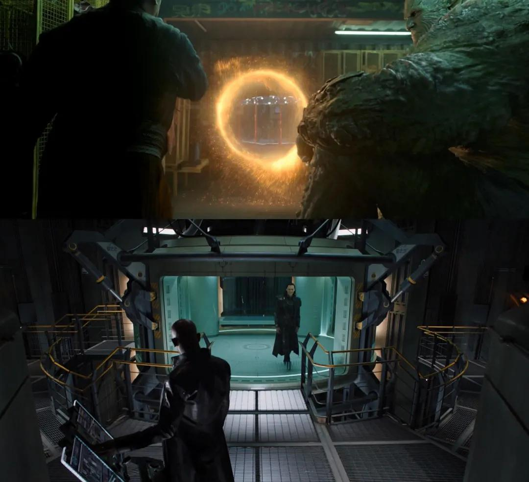 原因在于传送门里有一个笼子,很像《复联1》用来关绿巨人的笼子。