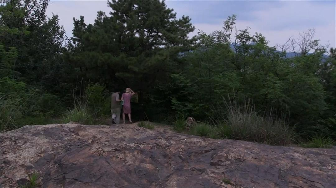 元珠是这个女孩的阿姨,当她和伊莉丝对谈时,总是致力于说出标准的词汇。她丈夫更是滑稽,他询问伊莉丝的帽子,耍弄她的圆珠笔,酒过三巡,还抱起吉他,煞有介事地拨起来,弹着哆啦咪发······这是一个介于刻板身份和出格举动之间的人。在散步的时候,他甚至对着石碑上的诗,跪拜了下去。对丈夫的表演,元珠女士也只能看着。这时,伊莉丝轻轻地摆着手走过去,碰了碰石碑,再走到元珠身边问她:“看到他这样拜,你心里怎么想?”元珠背对着镜头,手拿着一条捡来的树枝,说出自己敏锐的心声。于是,伊莉丝为她写了一段独特的文字,一段并非印刻在石头上,而是徘徊在树枝头的文字。n而她写下来的话,总是对实际情况的增强,对方要是“有一点不满”,会被她说成“我对自己很不满”,同时加以延伸。这到底是对真实情绪的揭示,还是基于某个词语的发散,你不得而知。既然选择了一个脱离实际的老师,你也无从去纠正她的手法。结果,这一张张卡片,都成了别致的礼物,是人给未来自己的礼物。