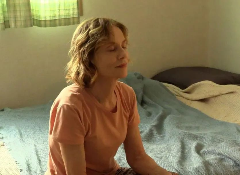 电影里印象最深的几个画面——于佩尔脱掉鞋光脚站在路边小池塘里,这一刻她感到前所未有的放松;在恋情即将被男友母亲戳破之时,她来到楼顶抽烟,若有所思;在公园的石头上她独自睡着了,醒来她怡然自得喝着最爱的美酒,仿佛一切都已不在话下……