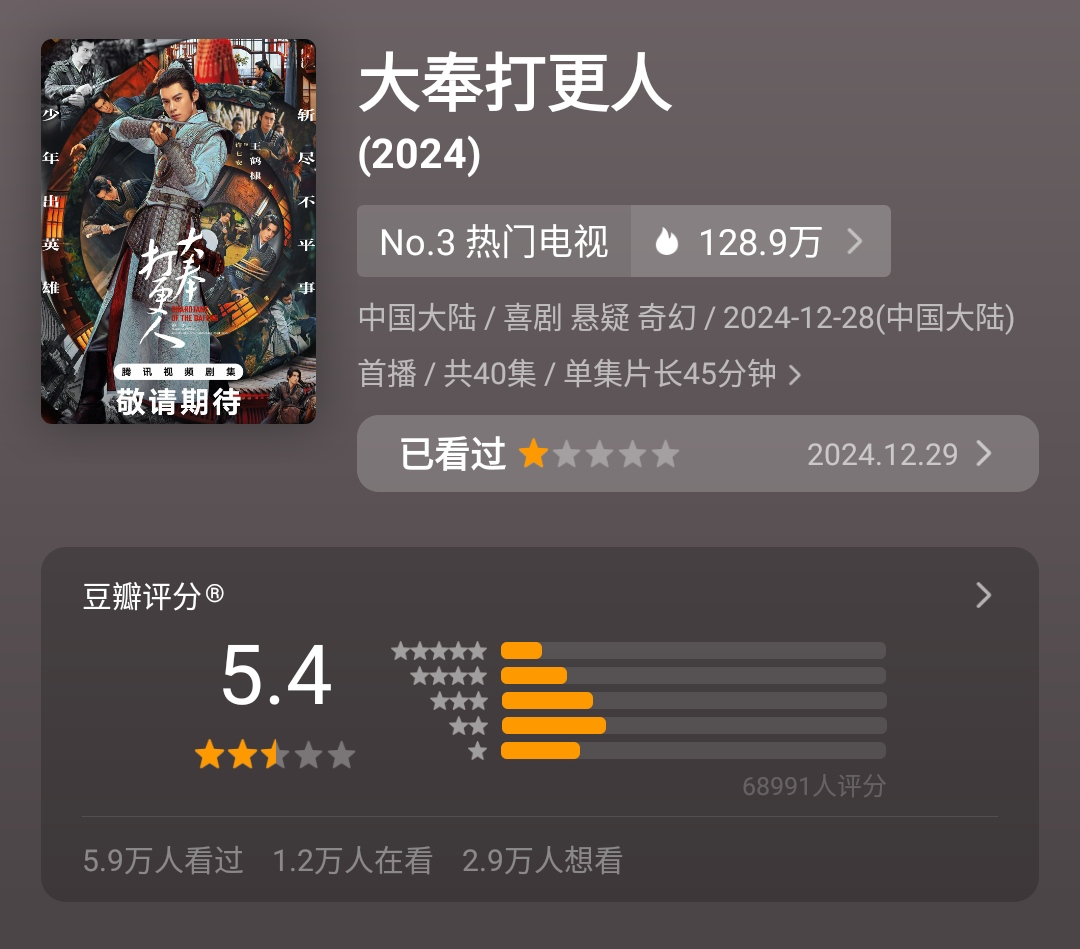 一曰预制爆剧,全自动爆,在胚胎里就爆,不需要观众的爆,反正平台会买水做数据,它是不爆也得爆,上央视收视率明明是跌破1,但通稿就能写「《大奉打更人》收视率破1!」这种丧事喜办的标题。