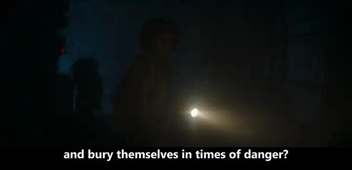 她点亮光剑,蓝光照亮黑暗。为前方的东西做准备。