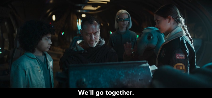 这到底是要拍第二季?中途被砍?编剧罢工?还是单纯编不下去?剧中的确有很多星战彩蛋,难道因为情怀就舍弃剧情吗?开头是很普通的儿童冒险片走向,几个生活优渥,过分无聊的小屁孩憧憬冒险生活,误启动一搜失事飞船飞出外太空,不知道母星坐标,只能在外游荡,四小孩在流浪途中遇到裘德洛饰演的疑似绝地武士的中年人乔德,踏上寻找母星的旅程。前3集都只算中规中矩吧,4、5集有些《曼达洛人》的味道,但这部是低幼版,所以主要目的基本都没有流血的轻松达成了,第6集是四小孩的高光时刻,利用信息差夺回了船长的位置,也找到母星坐标,而乔德也彻底暴露本性,变成大反派。可到了7、8集就是纯纯的“蛇尾”了,四个小孩儿涉世未深被骗也就算了,怎么一个堂堂银河系的造币厂也如此天真?你们造的是“傻币”吗?乔德说自己是共和国专员,全星球都相信了,没有核验身份就把他带到金库参观,有问必答。更可笑的是,跟着乔德的机器人我以为是监视他的,谁知道竟然是用来给乔德实时监控四小孩和纯带路的!乔德在金库里面垂涎三尺,都拿金币“洗脸”了,所有大人没一个发现不妥。是,后面是带着乔德去见监督长那核验身份了,明明发现是个冒牌货,十几个武装机器人一枪没放,监督长的大眼珠子就被捅了个对穿,还什么超级计算机?连个防御都没有,光剑一捅全城断电,乔德全面接管控制权。这段剧情我本以为是“诱敌深入”“瓮中捉鳖”,谁知道纯TM“引狼入室”!你们是一点防备没有呀!为什么监督长断电,所有机器人停工?你们星球机器人都是主计算机供电吗?一星球金币,连个锂电池都不给装?什么机器人血汗工厂?