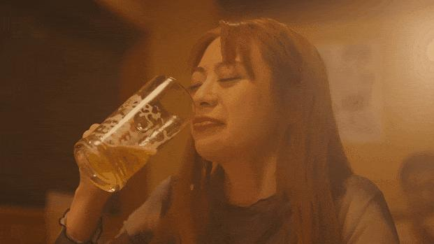女子大大方方地坐下,上来就干掉了一整杯啤酒。