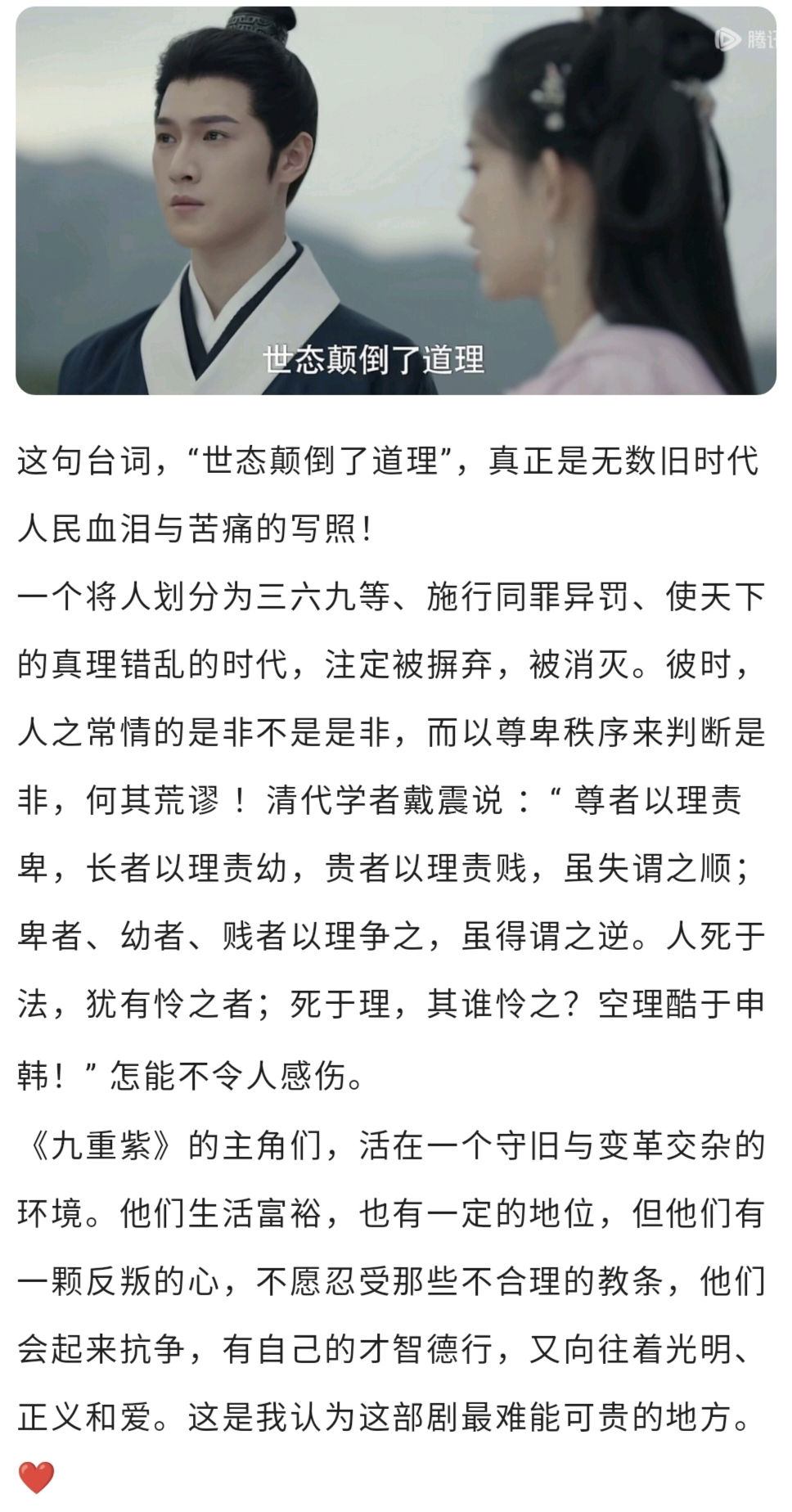 近日追《九重紫》,一口气看下来,虽有金手指问题,剧情也稍有割裂,但瑕不掩瑜,在现下的古偶之中算是非常认真的了。作为考据党略就情节记录一下吧????会随剧情更新哦~n(1)n服饰很明显,从海报和剧照都能看出是仿的明朝(中后期)式样,虽不能说都符合明制汉服形制,但少了几分影楼风,够精美。
