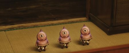 河童在电影中一闪而过,找不到合适的图片,就用了一张动画版的河童。河童可以说是最广为人知的日式妖怪了,他们长着鸟的喙、青蛙的四肢、猴子的身体及乌龟的壳,弱点是头顶的水,喜欢吃小黄瓜。在古代传说中,河童是危险的妖怪,会掏取人类的“尻子玉”,但是在近代文学或动画作品中,河童成了形象可爱的妖怪,让人们增强对河川环境的保护意识。