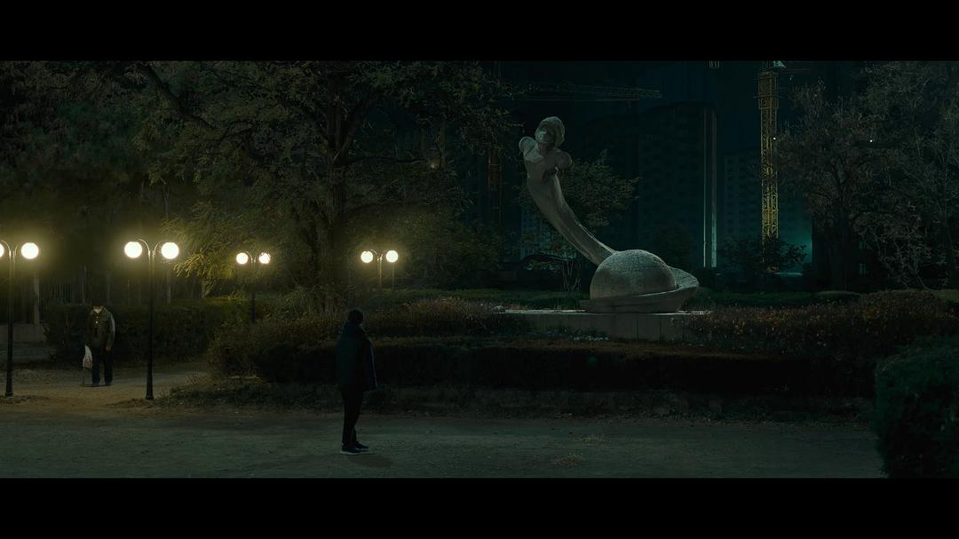 在影片的结尾,年迈的斌哥和巧巧重新回到了大同儿童公园,这里早已经没有儿童,只有和他们一样的退休老人。这个蛇形宇航员的雕像早已经没有了过往的昂扬之势,不再是以往腾飞前的挣脱,而更像是无力的倾倒。在夜色之下,这个雕像似乎要陷入沉睡,或者像老人般地静待衰朽。