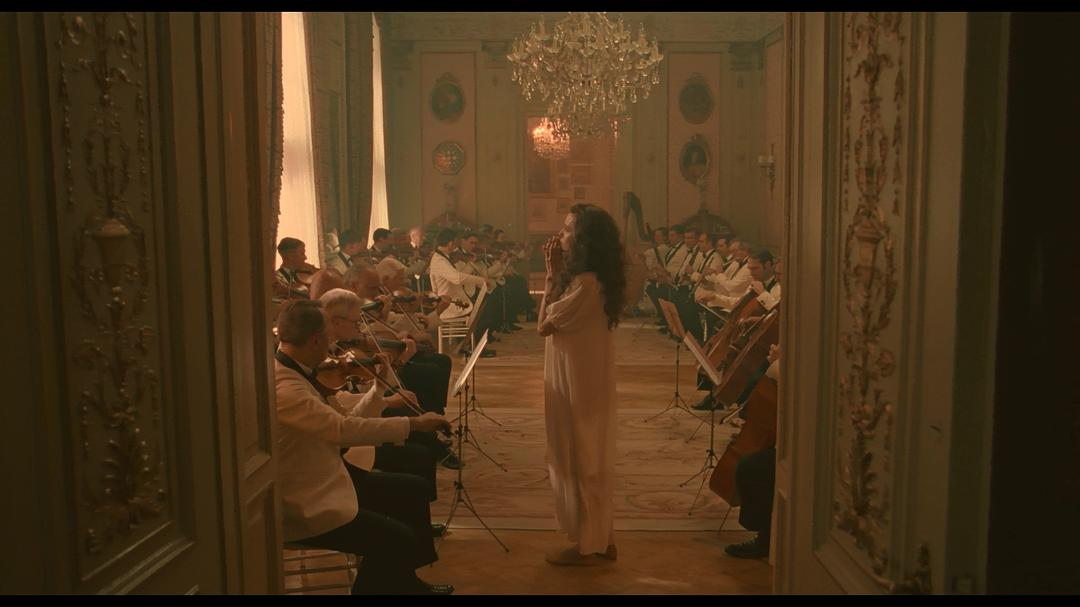 本来想借着《玛丽亚》梳理一下歌剧中角色情节和电影中人物情节的关系,但拉到一半我放弃了。诚然,网飞大可将歌曲翻译出来,甚至来点背景知识的普及。但在歌剧面前,这些一定是徒劳的。歌剧从来就不是理性的艺术(人为什么会在故事里唱歌?配乐来自现实、背景还是人物内心?将死的主角怎么能爆发出最震撼的力量?)。试图将电影中的咏叹调和卡拉斯又或是拉雷恩的拍摄和剪辑思路精密的联系起来是不可能的(导演也没打算这么做)。大部分歌剧的情节就是被伤害、折磨、抛弃的女性(中国戏曲也差不多)在舞台上以最华丽的方式死去,接着就是观众雷鸣般的掌声。这段话也足以概况卡拉斯的一生。