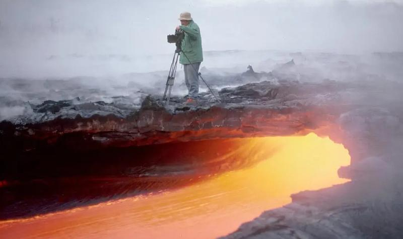 回到两部电影的讲述方式上去看,两部电影都是基于卡缇娅和莫里斯夫妇生前留下的影像资料导演重新整理去讲述的。《火山挚恋》过于修正某些正确的东西,比如“奇观”、“奉献”、“同理心”甚至过多笔墨的“爱情”,所以本片成为了火山夫妇两个人被滤镜化的传记纪录片,显得太过于“规矩”和“神话”。更不用说旁白和过多的配乐有多么呱躁,最让人不舒服是在原本就震撼的影像素材上又多余的添加了讲解人主观的解读,且讲解人没有客观的跳脱开来作为第三者去讲述,而试图与夫妇两人拍摄的已经够宏伟的影像合二为一,这是最让人无法接受的“毁坏”。结尾对夫妇两人的遇难也太过于一笔带过,这种只聚焦奇观和爱情的纪录片我觉得异常的糟糕!这也是我说电影很“抖音”的原因,他着重的是奇观。甚至让我想到那些讲解电影的短视频,注意看这个男人叫莫里斯,这个女人叫卡缇娅,她们和火山恋爱了,这个比较虽然不恰当,但可见背后的逻辑是一致的,素材剪辑加解读人主观的强附加