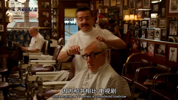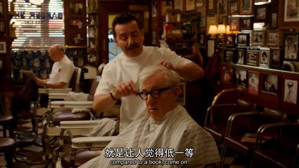 片中的理发师对圈内事似乎很是专业,这应该也是基于真实。至少上次约翰·特托罗忽悠伍迪来演《色衰应召男》(Fading Gigolo,2013)就是找他们相同的理发师来传话,才引起了伍迪的兴趣。可见,理发师的意见是多么的重要。