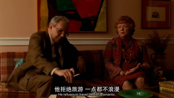 这样的手法也是老爷子善用和常用的,当然老爷子从不用这种手法去表达一个很复杂的事。比如,当她的妻子在给一对夫妻做治疗的时候。夫妻俩互相说出零零种种对彼此的不满,什么我爱运动她不爱运动,讨厌他打呼噜,讨厌她大笑之类的生活小事。这和我们的父母都一样,日子久了两生厌也是正常。老爷子并没有像其他探讨爱情和激情的电影一样,把这种现象拔到一个形而上的高度去分析。日常就是日常,不起眼的日常才是解决问题的良方呢!