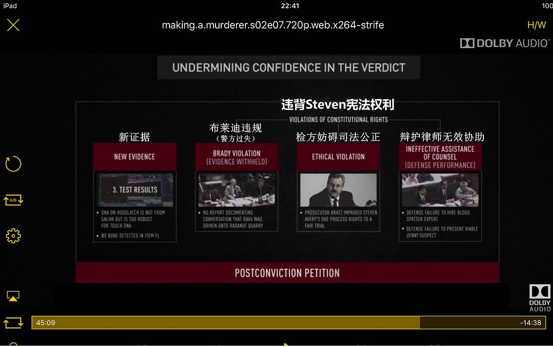 上诉律师Laura根据供认录像分析审讯违反了Brendan Dassey宪法权利,根据AEDPA法案为Brendan申请上人身保护令(?),再基于联邦人身保护令(宪法)成功上诉至联邦法院。(这段查了资料以后仍未能看懂→ →)