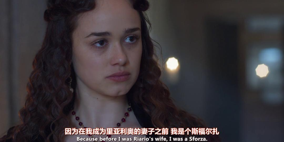 在第二季中教皇西笃斯四世为孤立美第奇家族,极力拉拢与洛伦佐交好的米兰公爵加来亚佐,安排了侄子吉罗拉莫与公爵女儿卡特琳娜的婚约,吉罗拉莫也借这桩婚事得到了伊莫拉的领地。作为第三季最大反派的妻子,起初很难猜透她的政治立场。只能看出,在喜怒无常、残暴乖张的丈夫面前,她学会了察言观色、谨言慎行。"Your mind is,as sharp as his temper."——西笃斯四世显然要比里亚里奥更了解卡特琳娜,毕竟,她的身体里流淌着斯福尔扎的血,注定不是等闲之辈。