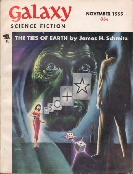 《弗》后来收在1955年1月的科幻年度选,《群星科幻小说》第三号。从这本书的封面上,能看出不愧是黄金时代,高手如云:阿西莫夫,克拉克,PKD,杰克万斯,雷布拉德布里。特别是刚出道不久的PKD,像火箭一样窜升到了跟大佬们平起平坐的位置。