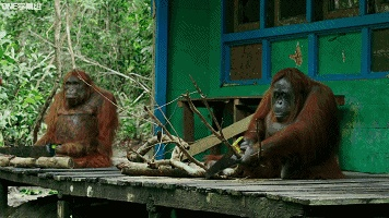 不仅如此,红毛猩猩还会使用锯子锯树枝,甚至还知道用脚按住树枝的两端保持平稳。