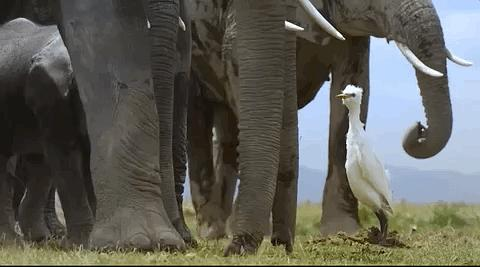 出乎意料的是,看到白鹭间谍嚣张挡在路中间,这些庞然大物居然都没有踩到它,而是小心翼翼从它身边经过。