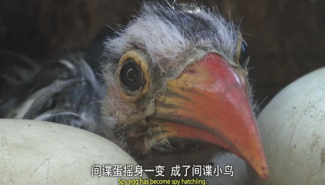 想拍到小红嘴犀鸟破壳的画面,就必须派出鸟蛋间谍了。