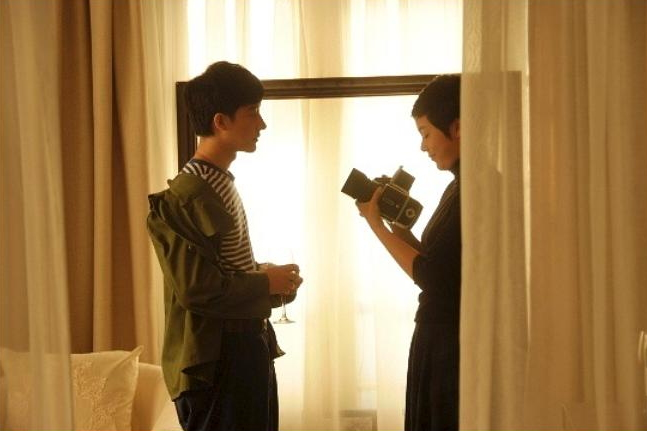 这个开篇有一点点像韩国电影《爱有天意》,同样一本日记本牵出的两代人的爱情故事的纠叠。不过《恋曲尘封》倒是比《爱有天意》更加大胆,随着主人公轩阅读日记本中记录的十八年前的一段恋情,故事悄无声息地在这两个原本是平行时空的18岁少男少女之间展开,18岁的轩被日记本/故事之中的18岁的少女打动,他用自己的画笔画下了18岁的岚贴在了美院的橱窗之中,被已经36岁的岚(蒋雯丽饰)看见,两人开始了一段无法描述的爱情,以至于实在无法用上帝视角去窥探出,究竟是18岁的黄轩把现实中36岁的岚当做故事中那个18岁的少女,还是36岁的岚最终把现实中18岁的黄轩当做故事中那个戛然而止的少年所接纳。看似两代人,却因为“爱”纠缠在一起,貌似石破惊天、却又合情合理。我想导演想表达的,就是这种穿越时间的情感纠葛,一种可以忽略时间的爱情,在现在这依旧是一种非常大胆的爱情观设定,更何况这是一部十三年前的作品,不得不说,那个时候的创作者是真的很生猛、无畏和自由。