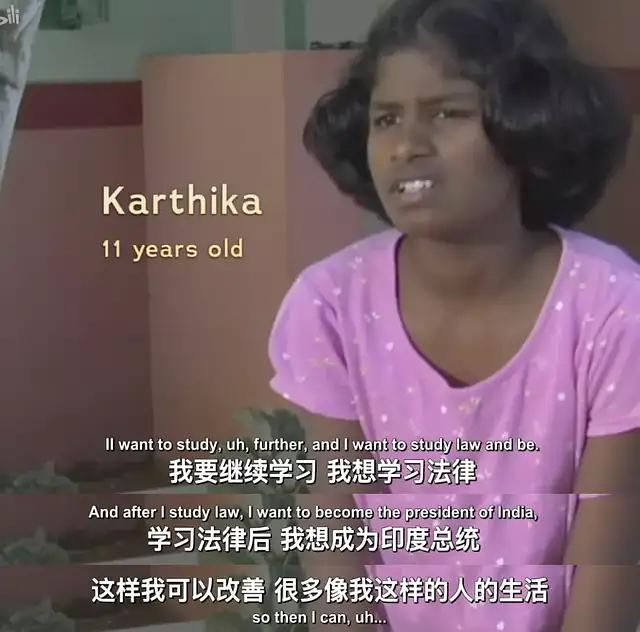 片子目前的豆瓣评分只有74人,9.5的高分在豆瓣算是少见。nn 纪录片一共四集,单集约60分钟。讲述了五个来自印度最低种姓的女孩在一家为她们提供14年免费教育的住宿学校的成长过程。nn 众所周知,印度女性的地位极其低下,女子出嫁必须陪送丰厚的嫁妆。女孩几乎从小被视为赔钱货,家务劳动一律由女性操持,普通人家的女孩十几岁就会被安排嫁人,二十几岁前生下孩子,如果嫁妆不够丰厚成婚后还会受到丈夫的虐待。nn而种姓制度在印度有着几千年历史,人被分为四种阶层:婆罗门、刹帝利、吠舍和首陀罗。最低下又有贱民,又被称作“碰不得者”,他们被视为低贱和不洁。即使在印度宪法明文废除种姓制度后,种姓制度的影响依然严重。nn(图一、图二)nn 前段时间火热的《摔跤吧,爸爸》其背景也正是如此。nn 片中一个叫Shilpa的女孩在她十四岁左右,她祖母就提出希望她嫁给自己的儿子,也就是女孩的叔叔。nn 在Shipa十四岁时,对这一切几乎毫无认知。家庭在孩子的认识里是自己可以依赖的对象,而祖母在她心中也是极其重要的人,对于嫁给叔叔这件事女孩在当时没有坚决反对,甚至一度同意。nn 可以设想,假如没有一个这样的受教育机会,或者说没有这样一个使自己拥有独立能力的机会(不论在经济上还是在思考上),女孩的命运是一眼可见的。nn(图三)nn 或许我们难以设想这件事,但当你成长的环境对这一切感到顺理成章时,一个人如何能做出局外人眼里看似必然的反抗呢?nn 这所叫做ShantiBhavan的学校,创办人是一位美籍印度商人,他在49岁(1997年)时决定回印度,为当地最穷的家庭建一所学校。nn 为了使有限的资源最大化,每个家庭只有一个孩子能获得免费教育的机会。而从学校毕业的孩子身上背负的是责任的传递,他们必须回馈家庭和帮助他人。nn如果帮助一个孩子,这个孩子再帮助一百个人甚至一千个人,那最终会影响整个社会。nn 学校严格的要求与学生理想的追求之间有时也不可避免的产生矛盾,回馈他人的要求使得学生必须去尽可能寻求稳定且有良好收入的职业,有的学生寻找到平衡,比如做律师、记者。而有的则在个人兴趣追求与所背负的责任间徘徊。nn 名为Preetha的女孩,她个性活泼敏感,小时候的梦想是成为歌手、艺术家和摄影师。nn 学校提供免费教育的目的是使这些孩子将来能够改变家庭处境乃至对他人提供帮助,而女孩这些梦想看起来更涉及私人的感受,于是校长建议女孩去读经济和历史,为考公务员做准备。nn(图四)nn 学校里会有很多西方义工,他们的想法跟印度文化有很大不同,所以孩子们必须去学着判断什么是正确的并且取得平衡。nn 对于整个印度传统文化,个人的彻底反叛是不可能也不可取的,但她们可以选择的是不按照社会的既加印象去麻木地顺从“命运”。选择的权利第一次被放在了她们的手上,一种开放的可能作为前景隐约有着追求的曙光。nn 对于人来说,追求的可能本身是一种自我的主宰感。nn 不确定性是始终伴随着的,但正相比于在平坦大道上开车的人,陡峭狭窄的道路会使人在把握方向盘时更集中精力。nn 目的地是一种摸索下的逐渐明晰,但道路本身需要自我的选择。nn(图五)nn 印度的教育竞争和中国相比只恐怕有过之而无不及,乃至他们的经济考量和社会阶级分层问题,很多地方看的时候都觉得感同身受。nn 教育的真正目的到底是什么?如果不是自由,那么我们追寻的一切到底是为了什么。nn 自由不意味着无负担的快乐,而是在选择面前的独立思考与对自我命运把握的能力。